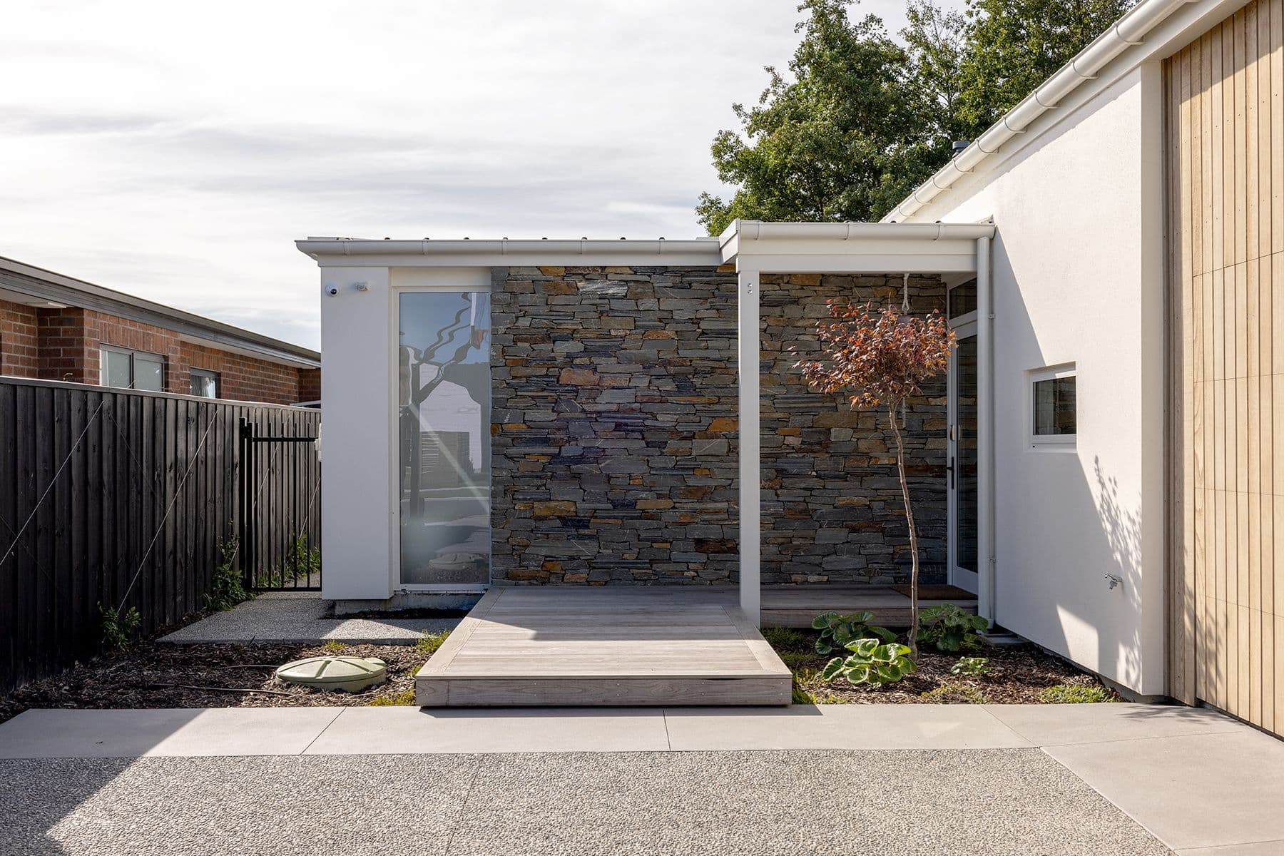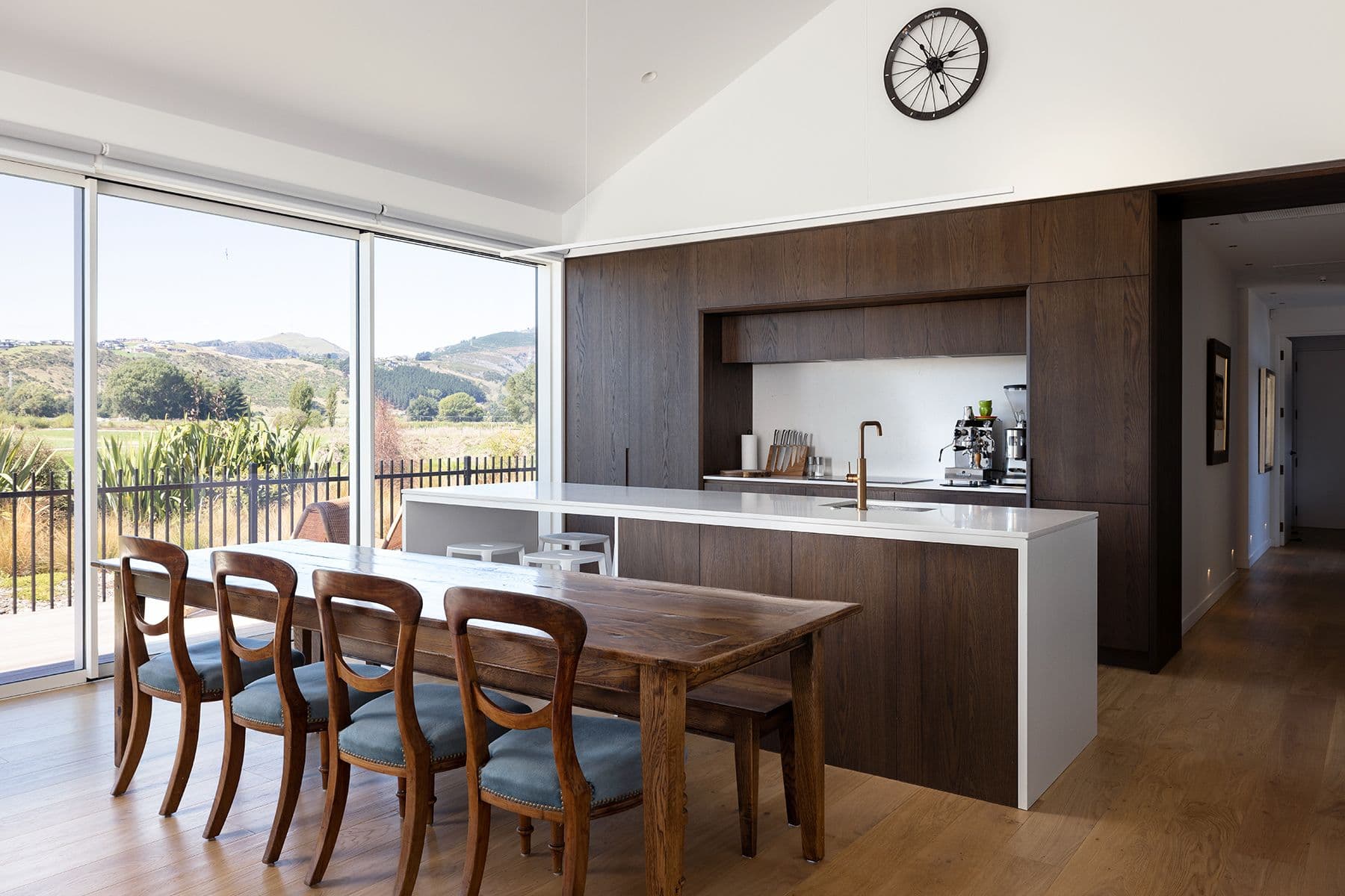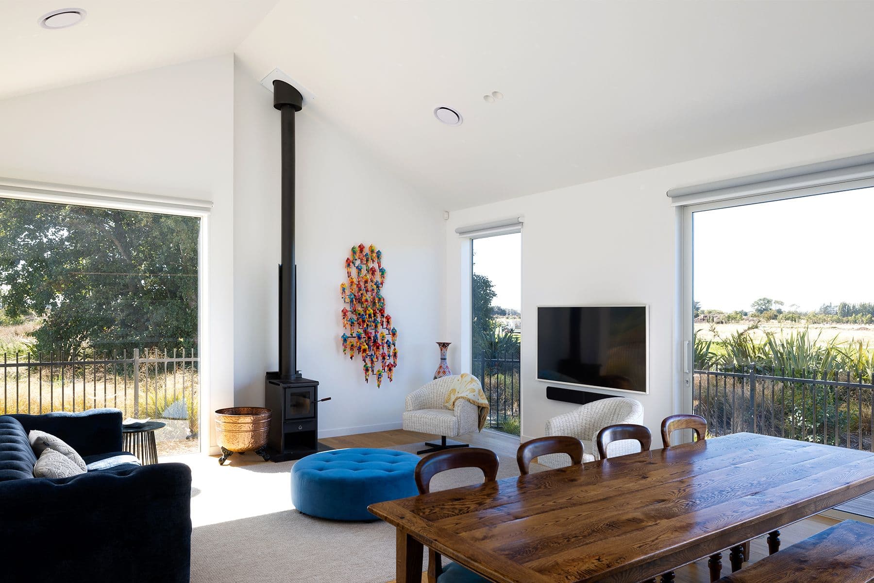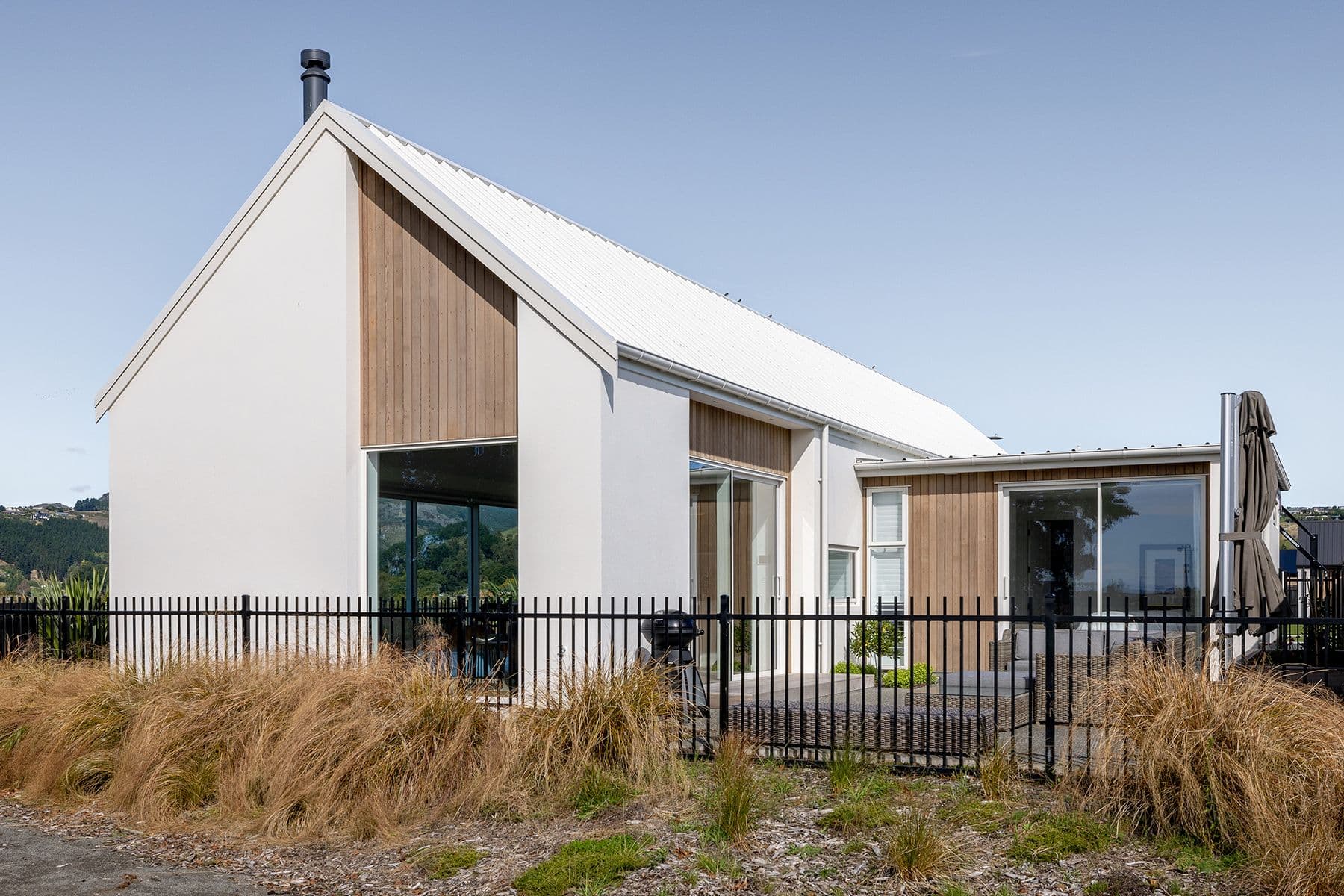 Sited on an intimate corner section, we designed this home to take full advantage of views of the Port Hills and, bordering the property, an expansive reserve that features native plantings with plans in place for thousands more seedlings. It’s an inspiring yet restful outlook, connecting Richard and his wife, Alessandra, with the land, but it’s his clever and creative design that has allowed this close connection. In spite of the challenges of a small and narrow site, Richard’s house design creates a strong sense of spaciousness and effortless style.