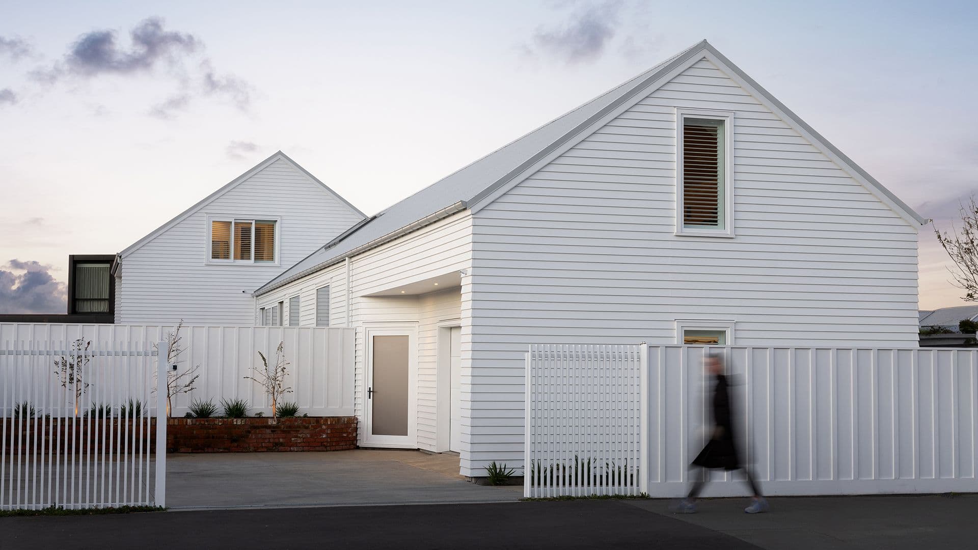In Redcliffs, this coastal residence was designed to sit naturally within its seaside setting, reflecting the relaxed character of nearby Sumner. Elevated floor levels respond to the site’s context, while crisp gable forms and Linea weatherboard cladding create a timeless coastal silhouette. Inside, light-filled spaces and generous volumes bring warmth to family living, with seamless connections to outdoor terraces framed by brickwork and planting. Upstairs, expansive windows capture sweeping sea views, making the landscape a daily presence. This design balances practicality and elegance, offering a family lifestyle defined by comfort and coastal charm.