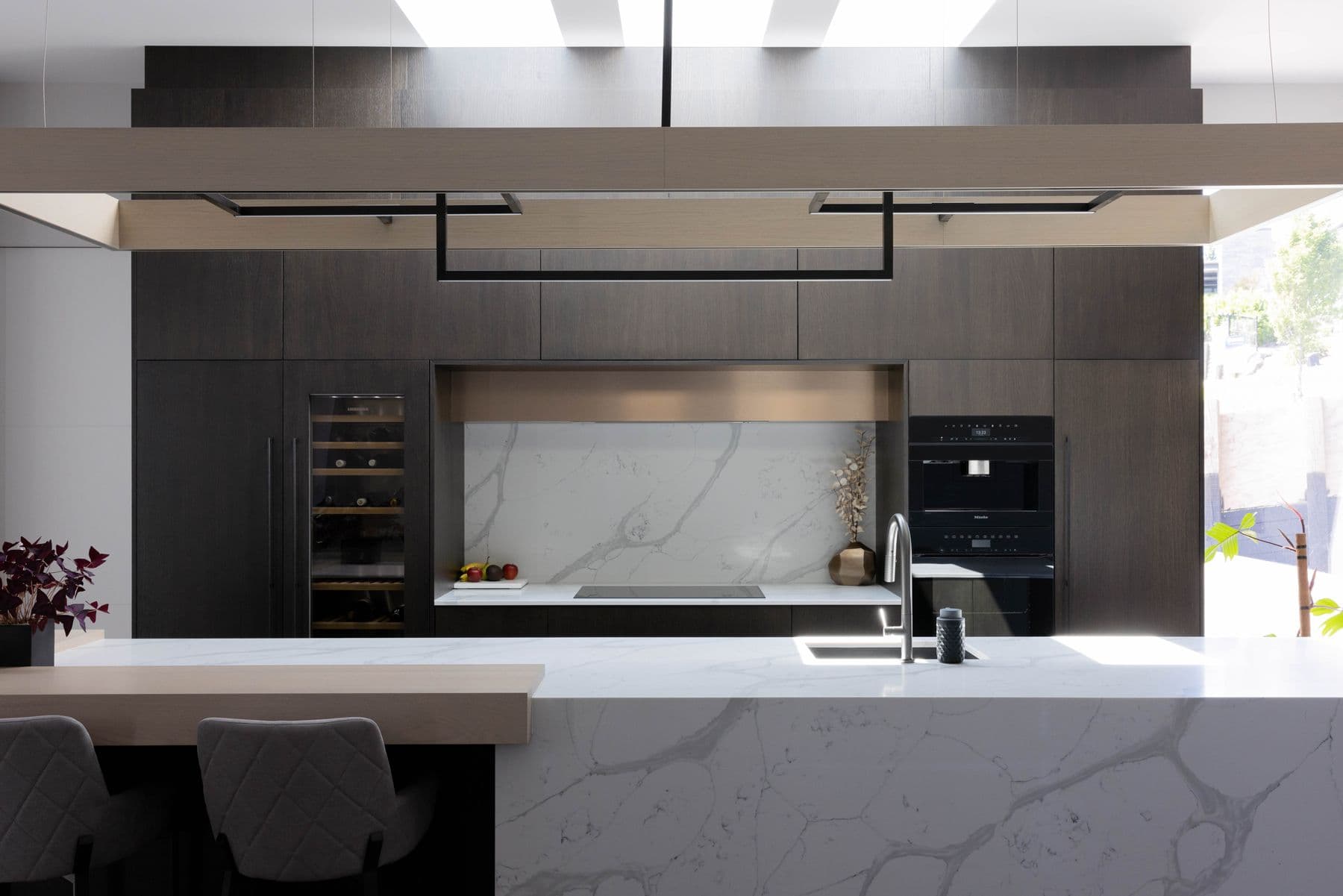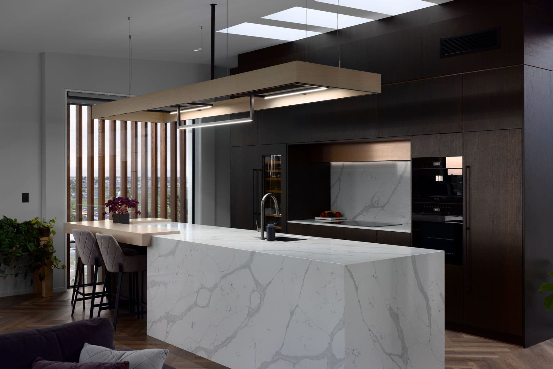 Nestled in the serene landscape of Stoneridge Downs, this architectural gem boasts breathtaking views of the Southern Alps, setting a new benchmark for luxury and design. Clad in health-conscious pine and durable Rockcote, the home’s exterior is a masterful blend, with cedar slats and intricately laid stone features, creating a visual symphony that enchants at first sight. Step inside, and you’re greeted by a high-end kitchen that redefines sophistication. The centerpiece, a stunning marble-covered island, is complemented by timber veneer cabinetry, harmonizing natural beauty with modern luxury. Every corner of this home is crafted to perfection, offering an ambiance of refined elegance that resonates throughout the space.