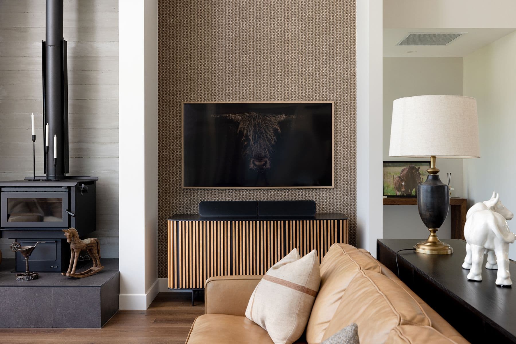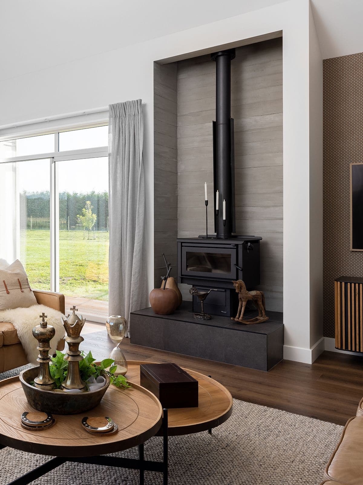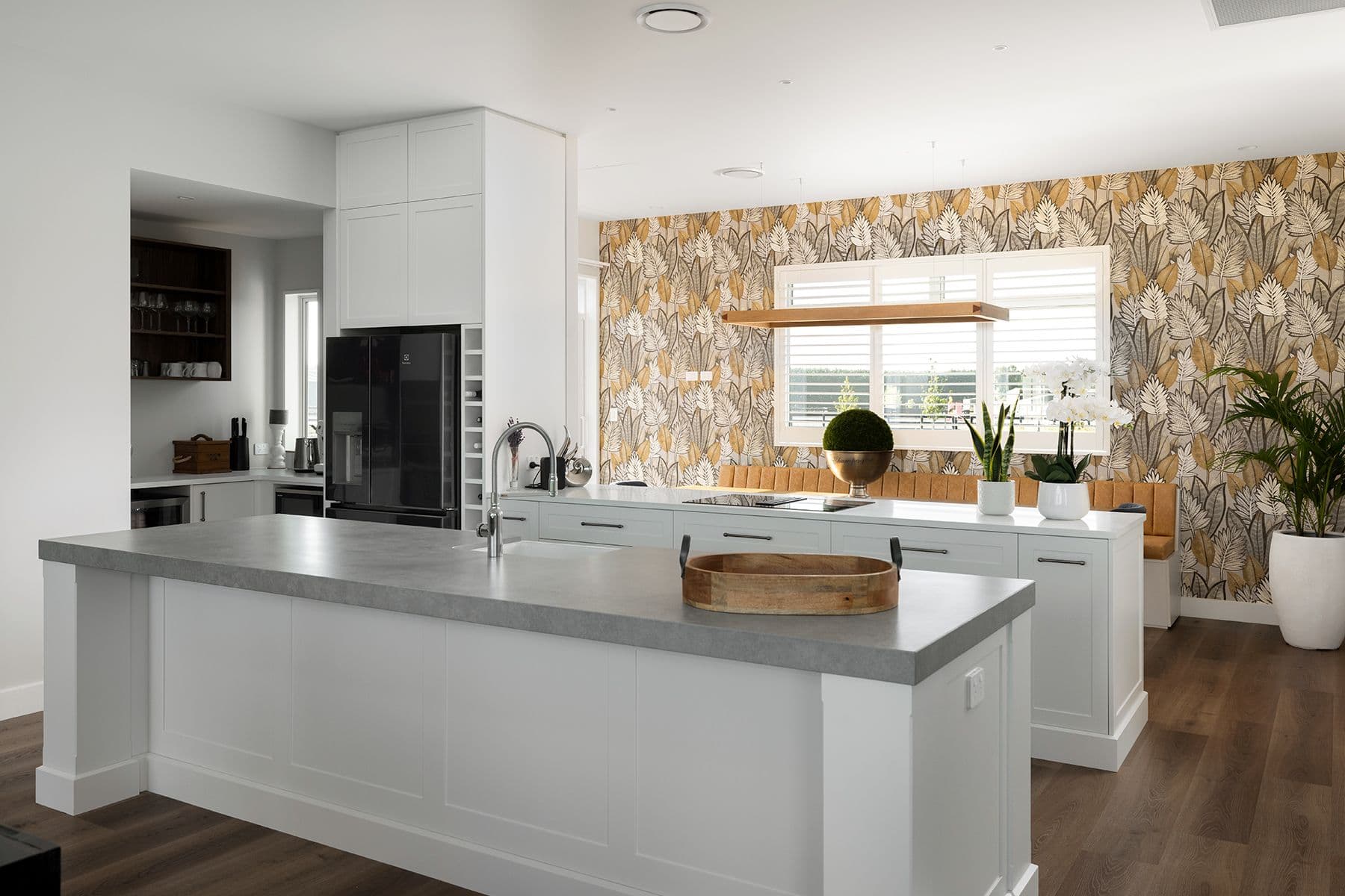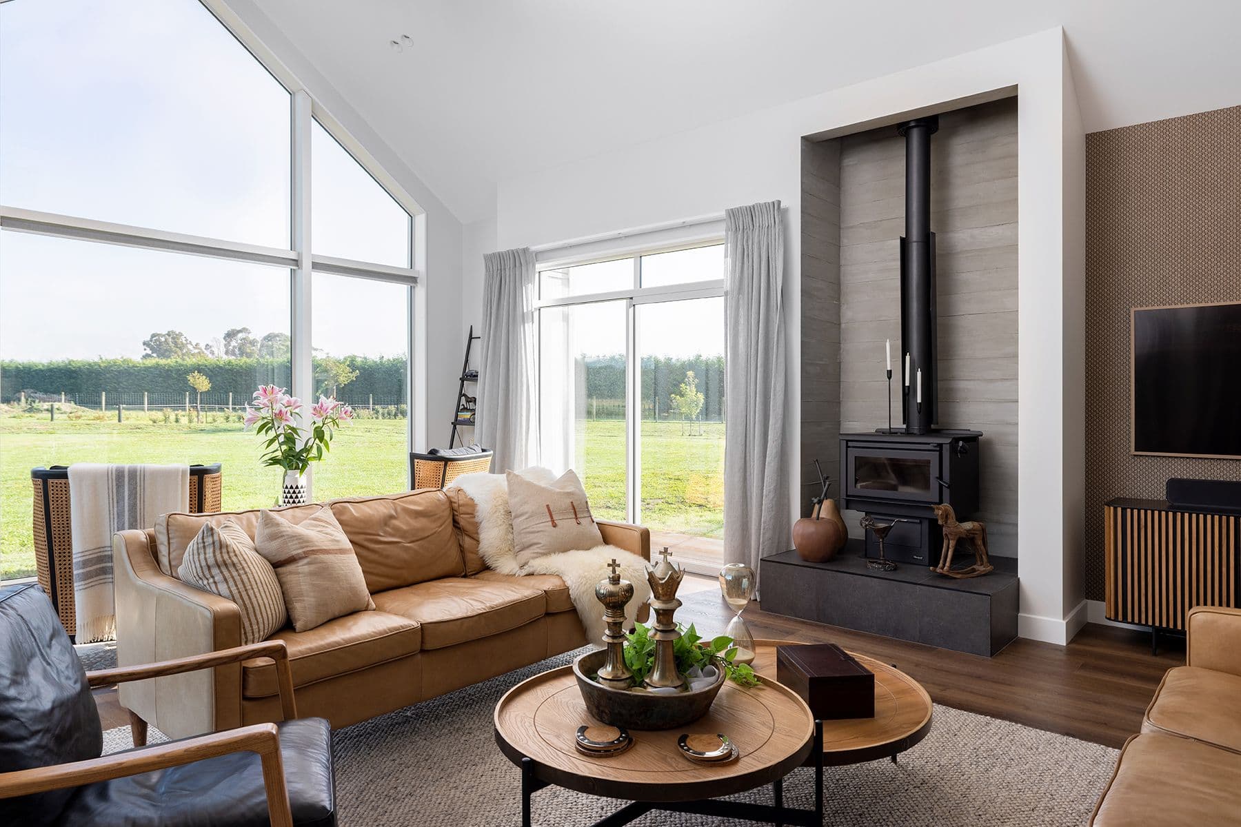 After 20 busy years of dairy farming, Grant and Carmen Lowe were ready to take a step back and began looking for a rural property that would suit their change of focus. With a triple-pavilion pitched-roof home packs a lot of charisma. From the outside it is a quintessential country classic, rustic and textured, with white painted board and batten delivering a traditional band-sawn finish. Roofing is hardy Colorsteel ‘Slate’ and inside, the skirting boards are as chunky as any you’d find in an old homestead. At the heart of the home, the main open-plan living area is a delight with a high five-metre vaulted ceiling delivering generous volume and impact.