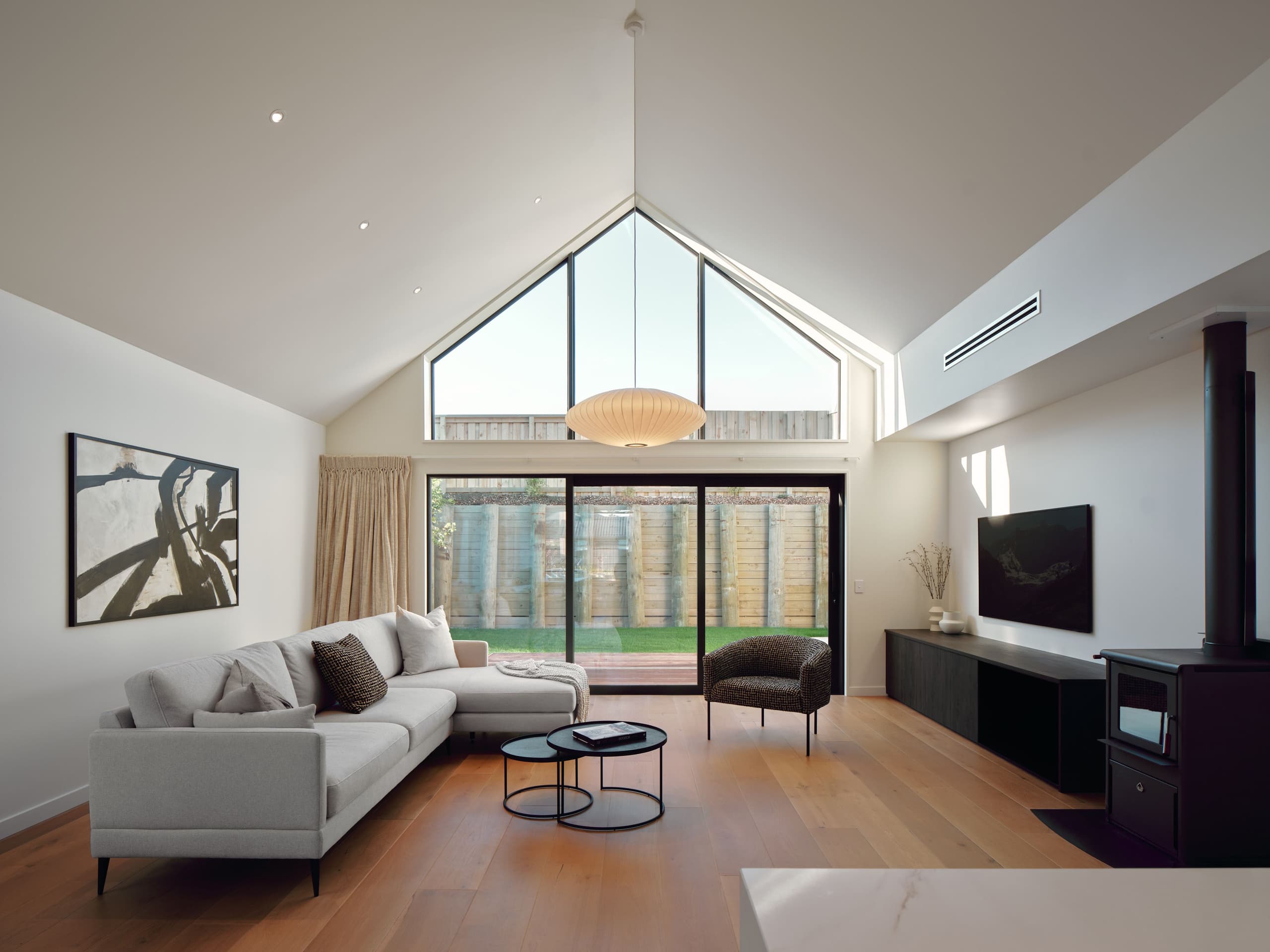 - Raked ceiling through main area
